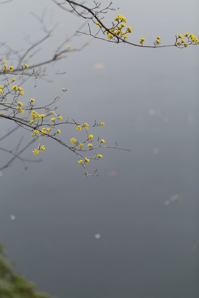 重たい冬色の池のうえに伸びた枝から、黄色い花が咲き始めていたからです。